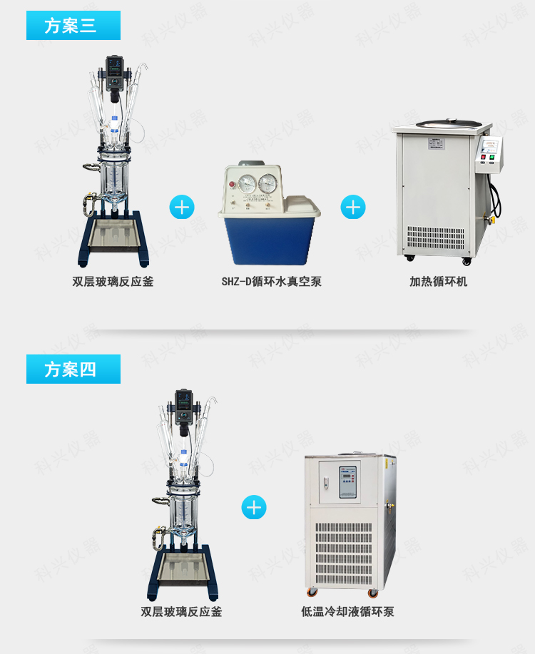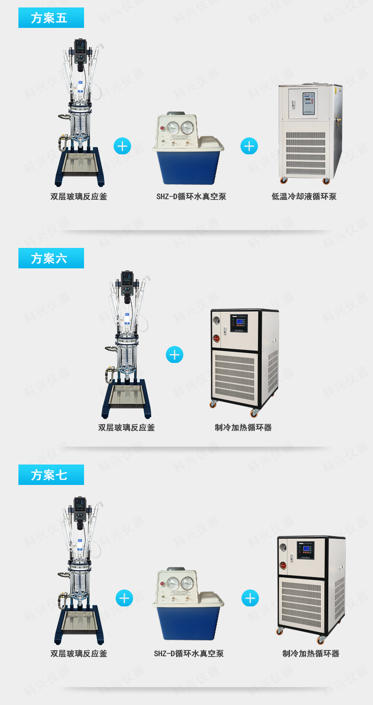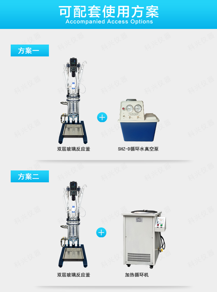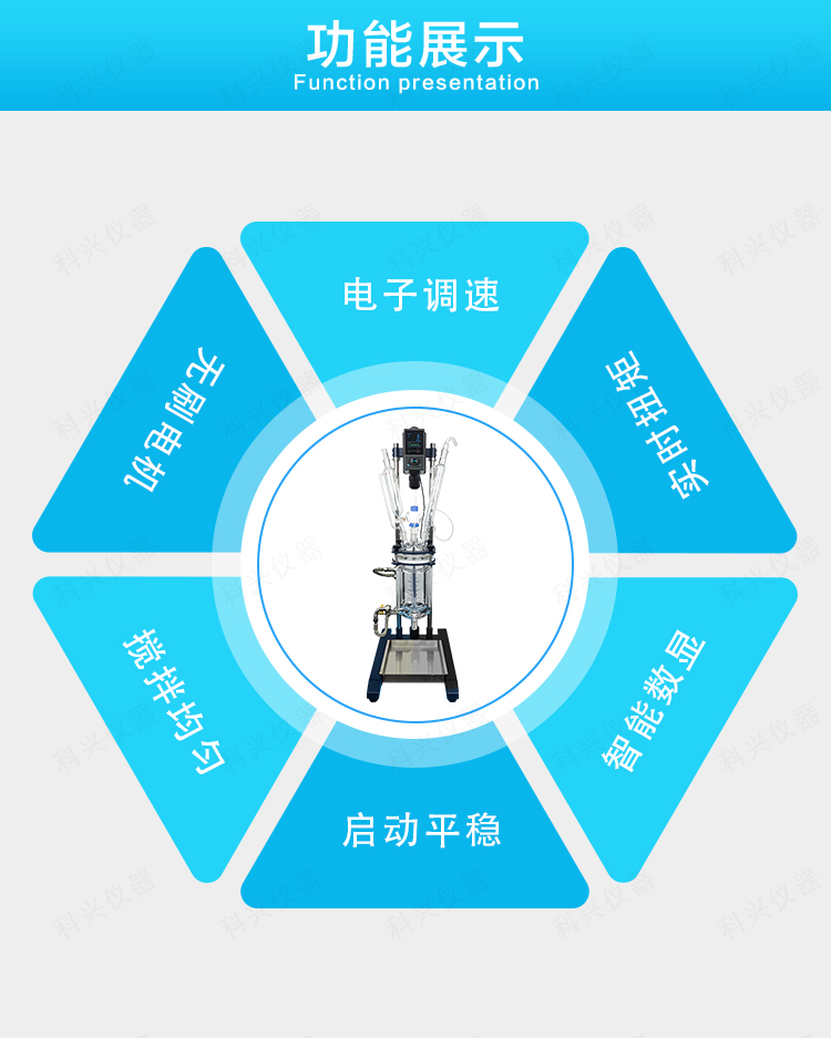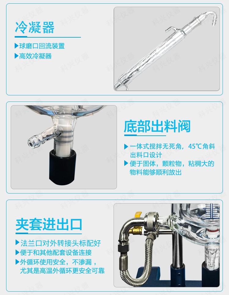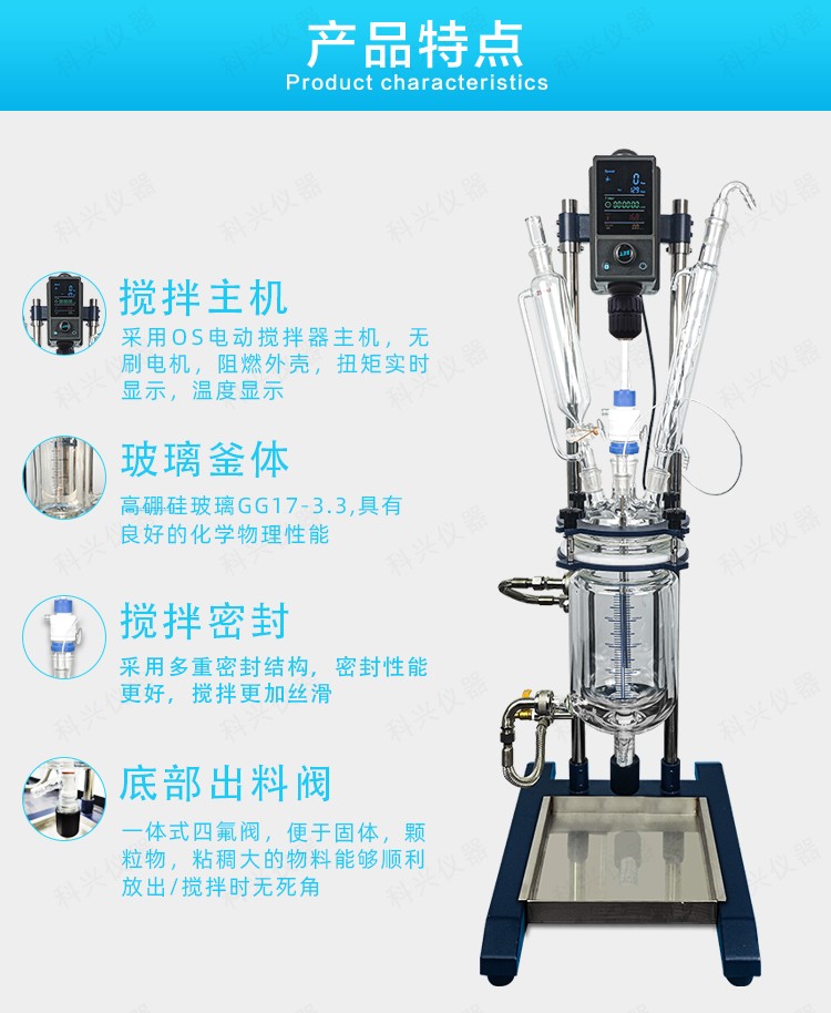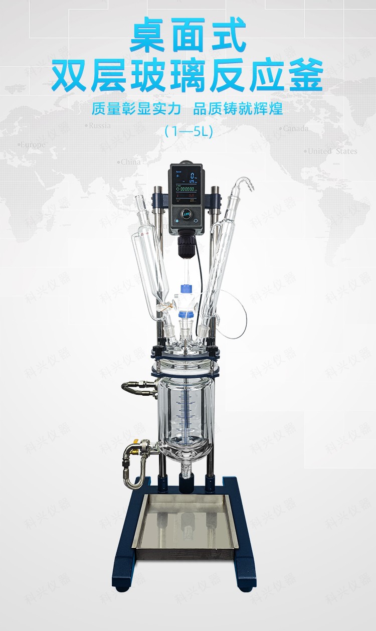 雙層玻璃反應釜為雙層玻璃設計,內層放入反應溶媒可做攪拌反應,夾層可通上不同的冷熱源(冷凍液,熱水或熱油)做高溫反應(配置相應的循環油浴鍋,溫度可以達到300℃)或低溫反應(配置相應的低溫冷凍液循環系統,溫度可以達到-80℃),也可選擇加熱制冷一體循環機;在設定恒溫條件下,在密閉的玻璃反應器內,可根據使用要求在常壓或負壓條件下進行攪拌反應,并能做反應溶液的回流與蒸餾,使用中可以抽成真空,從而做真空反應。是現代精細化工、生物制藥和新材料合成的理想中試、生產設備。它的這種設計使試驗更加的安全,更加的方便。